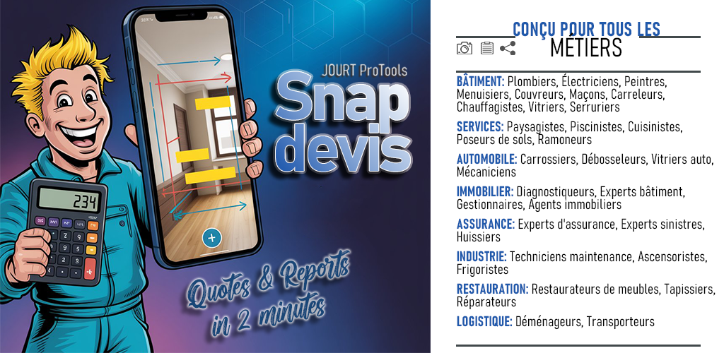 Capturez les dimensions des vitrages, documentez les châssis et générez des devis pour remplacements et installations.