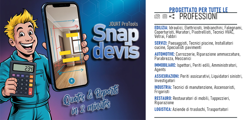 In JOURT, crediamo che i tuoi dati professionali appartengano a te. Ecco perché SnapDevis è stato progettato fin dall'inizio con una filosofia di privacy totale. A differenza delle app cloud, tutte le tue foto di cantiere, preventivi e informazioni sui clienti rimangono esclusivamente sul tuo telefono.